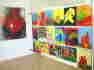 Die Künstlerin arbeitet auch gern mit Kindern und präsentiert in dieser Ausstellung neben ihren eigenen neuen Werken auch die Malergebnisse der Kinder ihres letzten Malworkshops.
